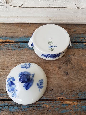Royal Copenhagen, Flettet Blå Blomst, smør skål med låg No. 8139, 1. sort. Højde 9cm. Diameter 10,5cm.