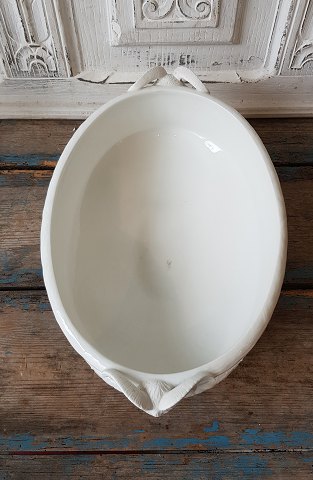 Oval skål prydet med bukkehoveder i biscuit.