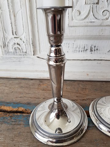 Par smukke enkle sølvstager. Stemplet: 830s - ETJ Den ene stage fremstår med en blød bule - se billed. Højde 17 cm.