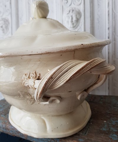 Engelsk creamware stor terrin ca. 1780 Antageligt fra Leeds Pottery Fremstår med et par nag - se billed. Mål 29 x 40 cm. Højde 28 cm.