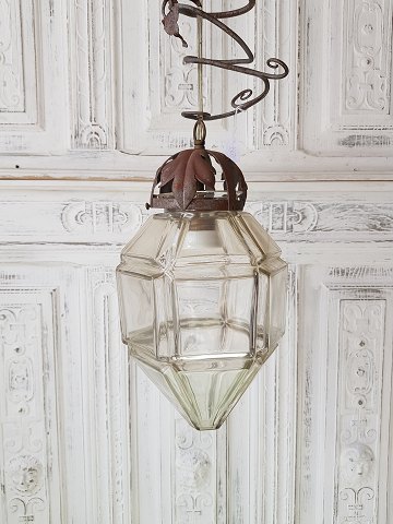 Skøn hall lanterne i form af snoet rosen ranke med slebet glaskuppel.
