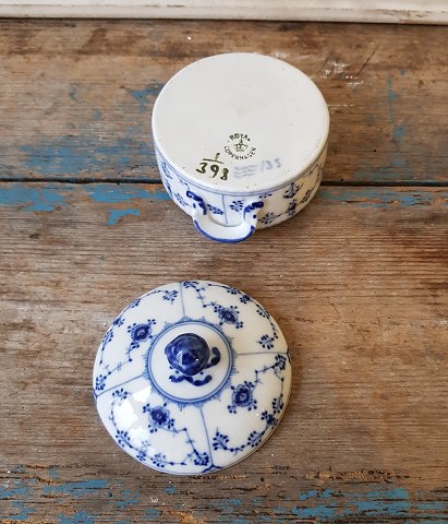 Royal Copenhagen Musselmalet riflet smørskål No. 398, 1. sort. Højde 7 cm. Diameter 8,5 cm. Produceret mellem 1898-1923