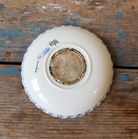 Royal Copenhagen Blue Fluted Full Lace Cuff with Silver Coin - King Christian X 25th Government Anniversary 1912-37 Coin.No. 1009