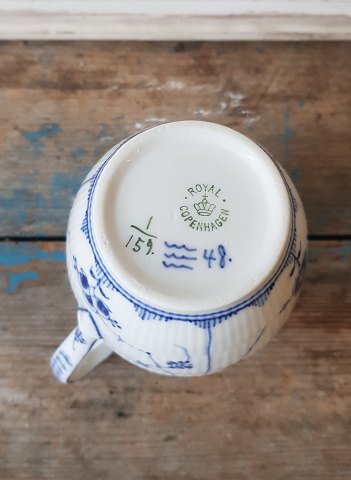 Royal Copenhagen Musselmalet riflet lille mælkekande No. 159, 1. sort. Højde 13,5 cm. Rummer 250 ml. Produceret mellem 1898-1923