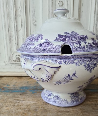 1800tals fajance terrin dekoreret med lilla Asiatic Pheasants