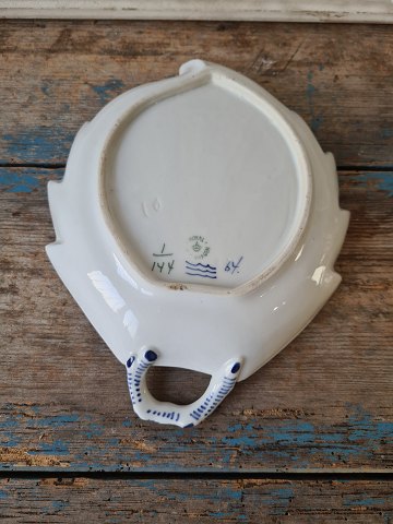 Royal Copenhagen Musselmalet riflet bladformet asiet No. 144, 1. sort. Mål 18,5 x 23 cm. Produceret mellem 1898-1923