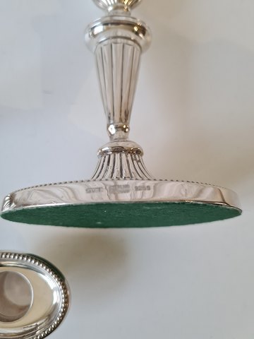 Svend Toxværd på kanalerede sølv lysestager med aftagelige manchetter.