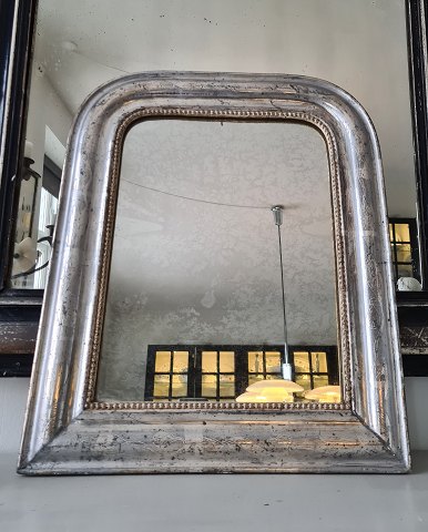 Smukt Louis Philippe spejl i fin sølv ramme med perlekant