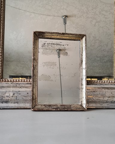 1800s small mirror in beautiful simple silver frame 13 x 18.5 cm.
