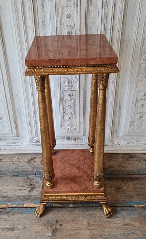 Piedestal på løvefødder i forgyldt træ med rødbroget marmorplade