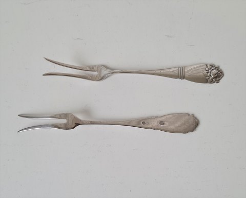 Pålægsgaffel i sølv dekoreret med rose i relief 13 cm.