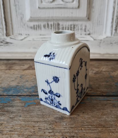 Tedåse med musselmalet dekoration fra 1700tallets slutning Der forekommer ingen fabriksstempler Højde 10 cm.