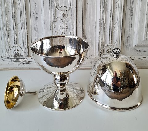 Caviar bowl in the form of an egg on a stand, made by Holmsted produced in hammered sterling silver, the bowl for caviar is made of gold-plated sterling silver. Sold |
