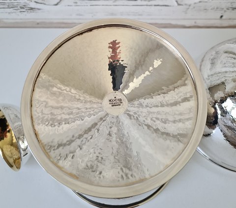 Caviar bowl in the form of an egg on a stand, made by Holmsted produced in hammered sterling silver, the bowl for caviar is made of gold-plated sterling silver.