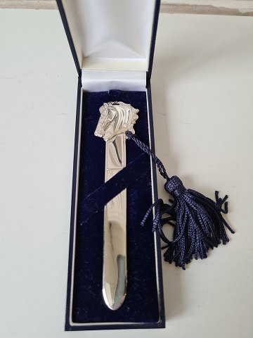 Bogmærke i sterlingsølv, toppen er udformet som et hestehoved forsynet med en silkekvast.