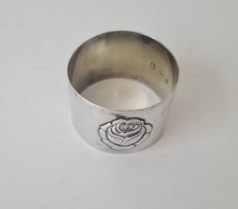 Bred servietring i sølv dekoreret med roser Stemplet de tre tårne 1915 Bredde 3,2 cm. Diameter 4,5 cm.