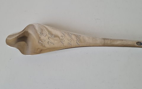 Potageske i sølv fra 1906 Stemplet de tre tårne 1906 - Blinkenberg Fremstår med gravering på bagsiden. Længde 36,5 cm.