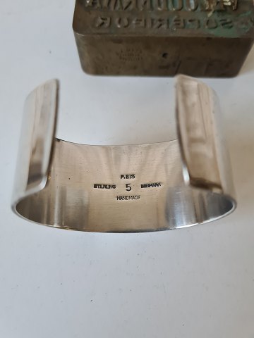 Palle Bisgaard vintage bred armring i sterlingsølv og Abelone