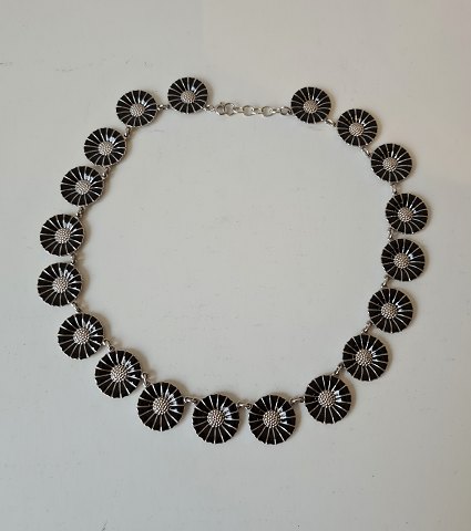 Georg Jensen halskæde med 19 Margueritter i sølv og sort emalje