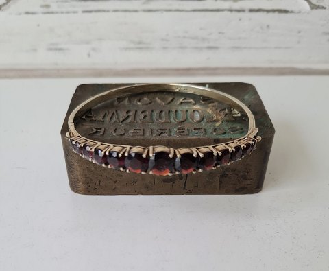 Vintage armring i forgyldt sterlingsølv prydet med store smukke granater Stemplet: GIFA - 925 Diameter 6,5 cm. Mål på granaterne: 8,22 - 3,6 mm.