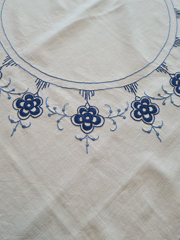 Broderet dug med musselmalet mønster 127 x 127 cm.