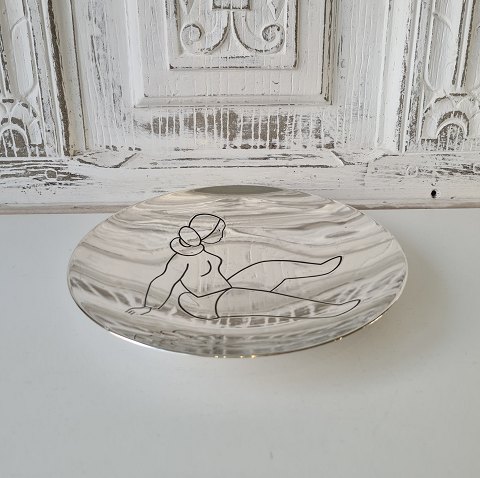 Beautiful bowl in sterling silver decorated with the shiluet of a Greenlandic woman in black enamel produced by Jens Tage Hansen