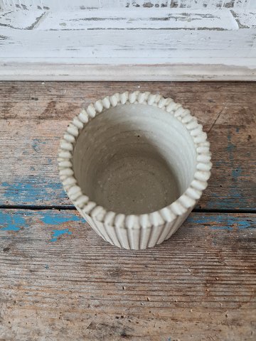 Arne Bang riflet vase i sandfarvet glasur no. 129