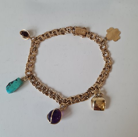 Vintage Bismarck armbånd med 5 charms i 14 kt guld