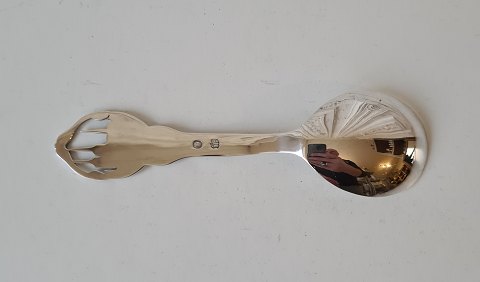 Marmeladeske i sølv dekoreret med Roskilde Domkirke samt teksten Roskilde Stemplet de tre tårne 1959 Længde 14,3 cm.