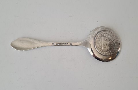 Marmalade spoon in silver with commemorative silver coin from King Christian X & Queen Alexandrine's silver wedding 1898-1923 Sold |
