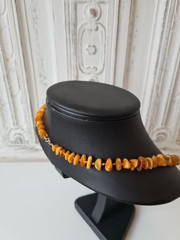 Lang vintage halskæde med pollerede ravstykker i forløb