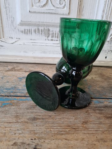 Grønt hvidvinsglas med oliven slibninger Produceret på Holmegaard fra 1853 Højde 12,5 cm. Lager: