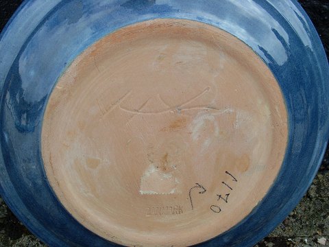 Kähler tallerken dekoreret med fantasi fugl i creme, blå og brunefarver. Diameter 22cm.