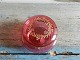 Skønt skrin i hindbær farvet glas med håndmalet guld dekoration.