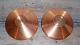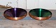 Par Corona kobber skåle med lilla og grøn emalje. Fremstår med brugs spor. Stemplet Corona Denmark. Højde 6cm. Diameter 18cm.
