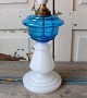 1800tals opaline lampe med blå oliebeholder
