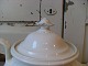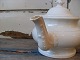 Smuk gammel fajance tekande. Fremstår med et lille skår på tuden samt afslag på lågknoppen, se billederne. Højde 18cm. Længde 29cm.