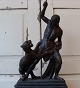 "Panter dræberen" klassisk figur i sort bemalet gips Stemplet Eneret H.C.Brix Højde 68cm. målt med spyd. Mål uden spyd 54cm. Sokkel mål 17,5x29cm.