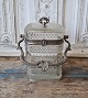 Beautiful old biscuit bucket in pressed glass with pewter mounting Measurements 12 x 12 cm. Height 19.5 cm.