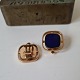 Vintage ear clip in 14 kt gold with plate of blue stone. Stamp 585 Measure 1.9 x 2.3 cm. Weight 11.8 grams.