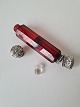 Two-part perfume bottle in ruby red glass with silver mounting from the late 1800s Length 14.5 cm.