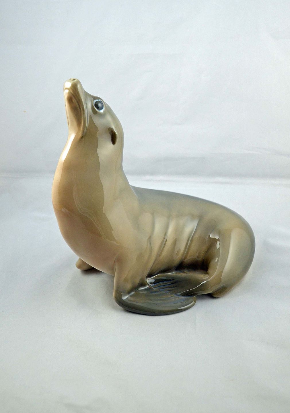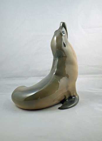 Stor kgl. porcelænsfigur af søløve nr. 265 af A Nielsen for Royal Copenhagen.