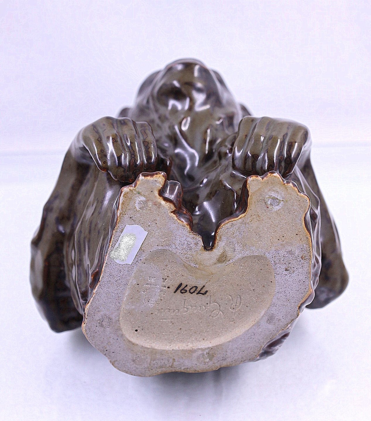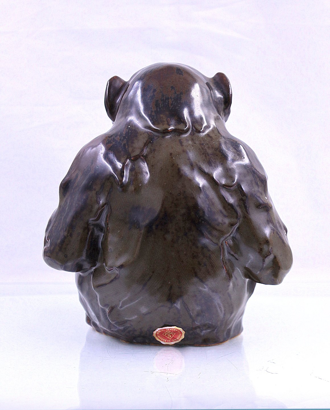 Bing & Grøndahl. Stentøjs figur af chimpanse, nr. 7091, Jean Renè Gauguin. Dansk stentøj, figuren er blank glaseret med sung glasur.