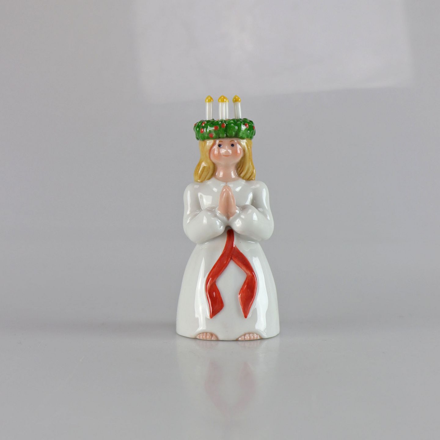 Kongelig porcelænsfigur af pige som Luciabrud med lyskrans på hovedet