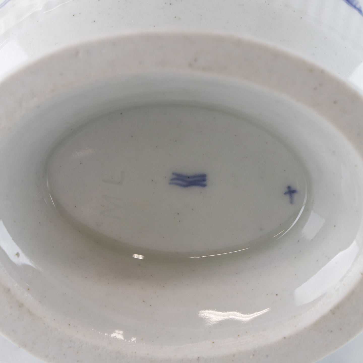 Riflet hvidt porcelæn med dekoration af blå ranker