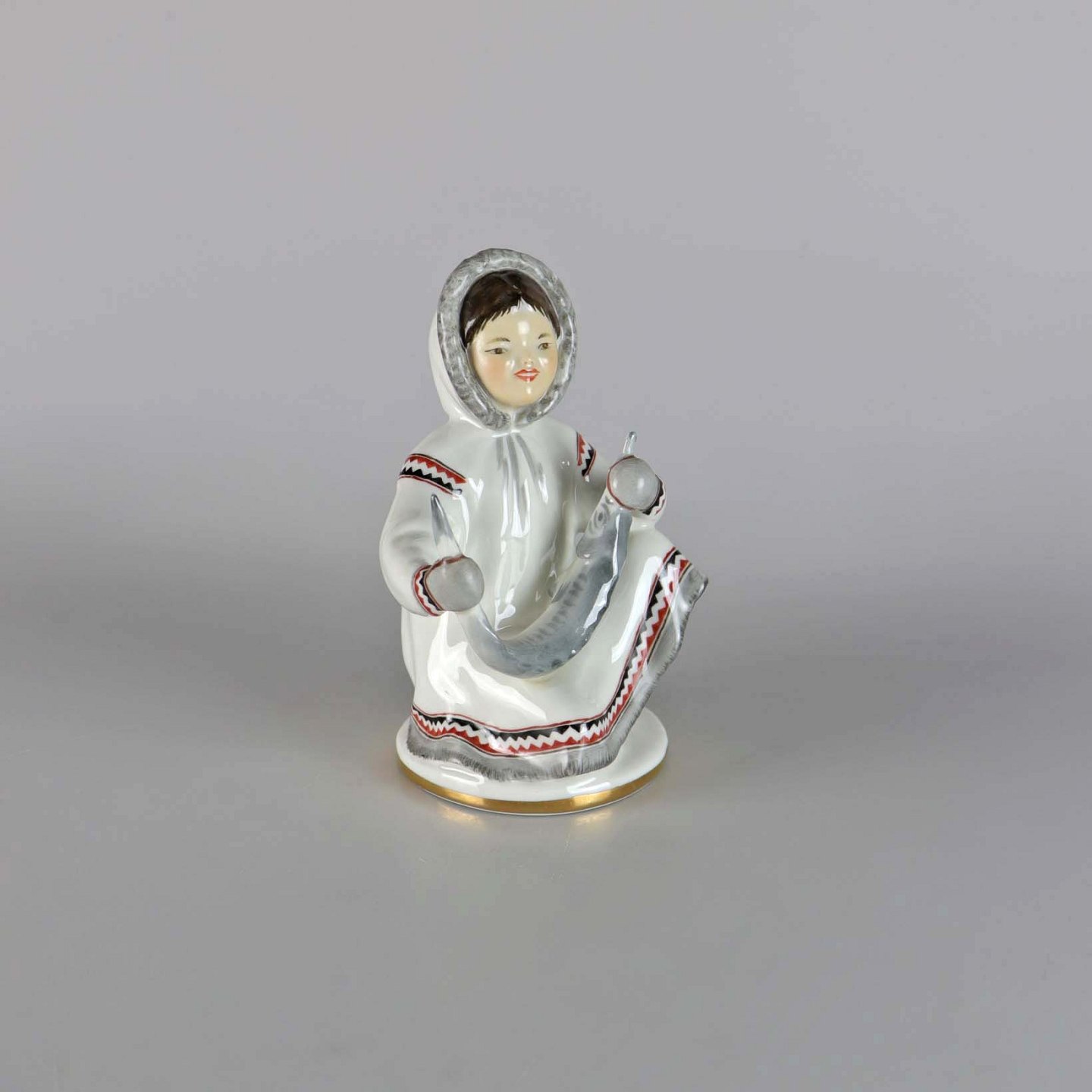 Russisk porcelænsfigur af en pige med fisk