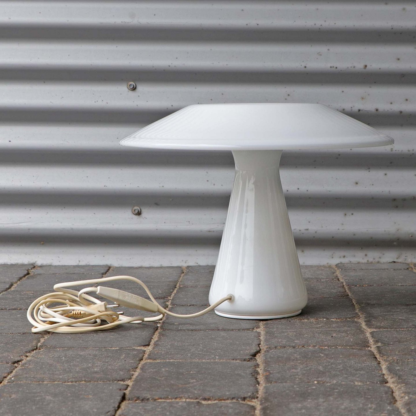 Hvid riflet bordlampe