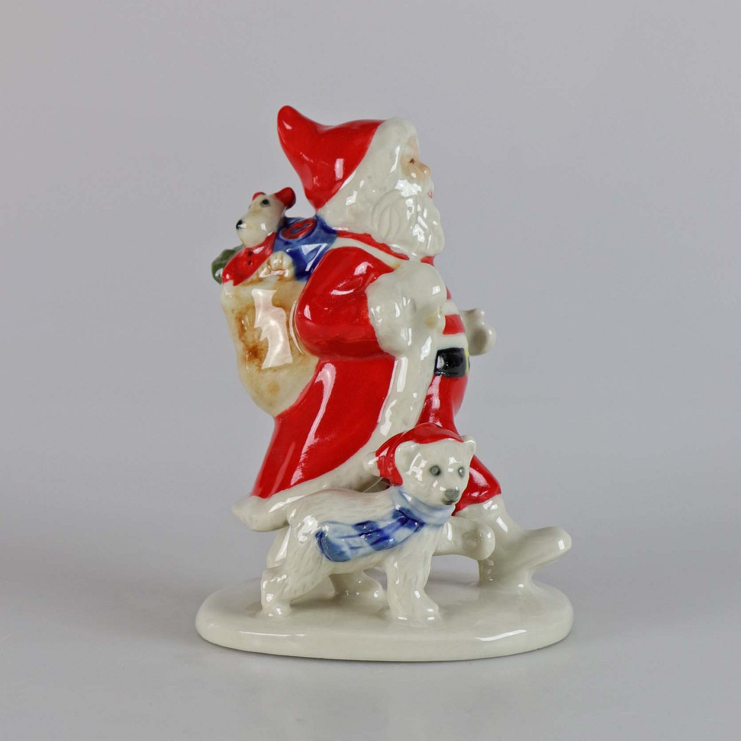 Årets Julemand i porcelæn År 2020. Julemanden med gavesæk og isbjørneunge