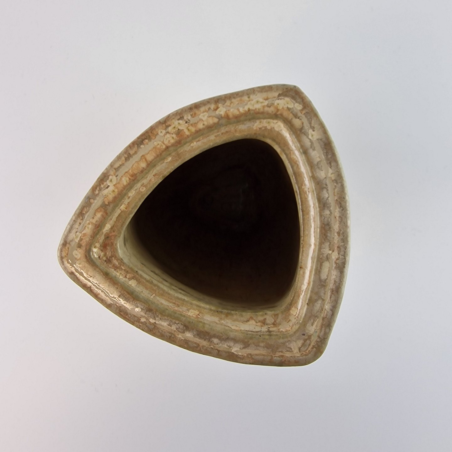 Trekantet vase med motiv på alle tre sider. Mangler låget.