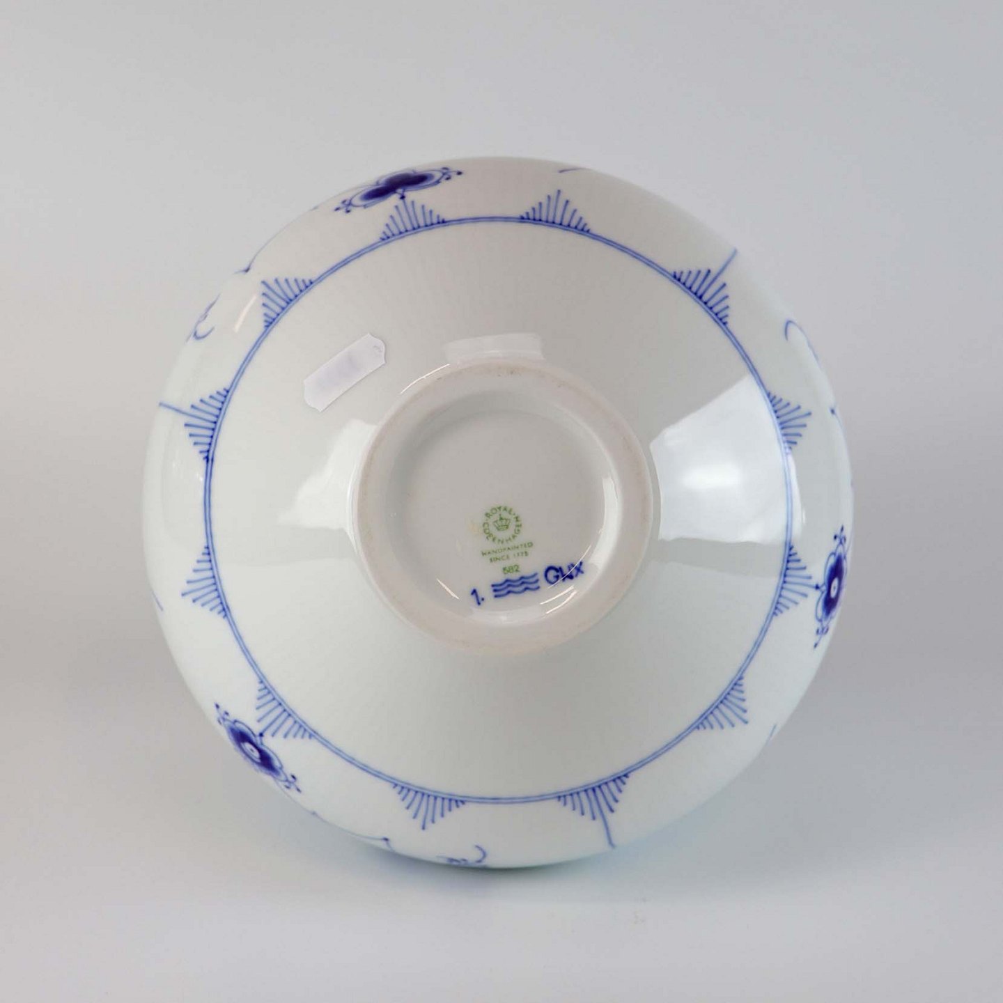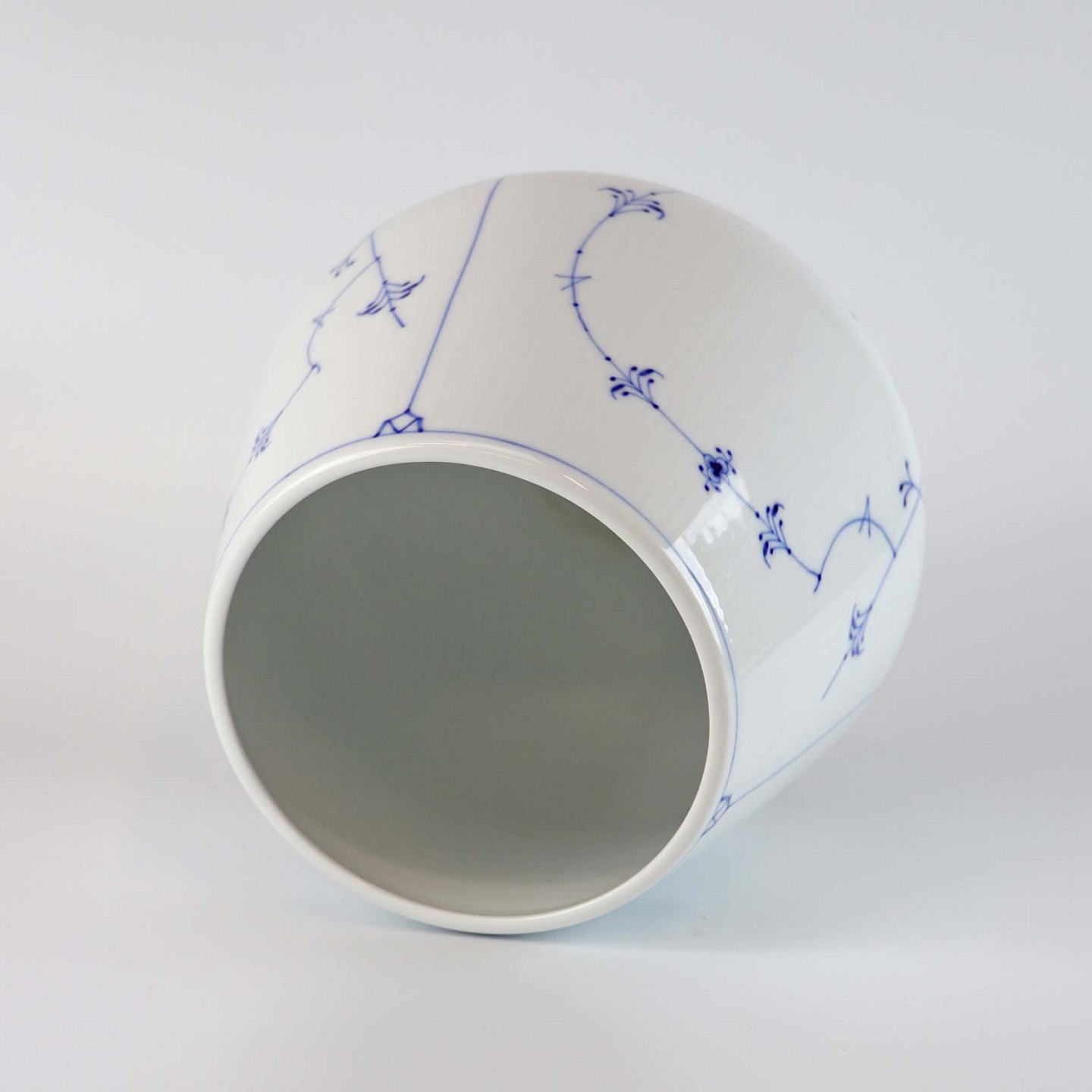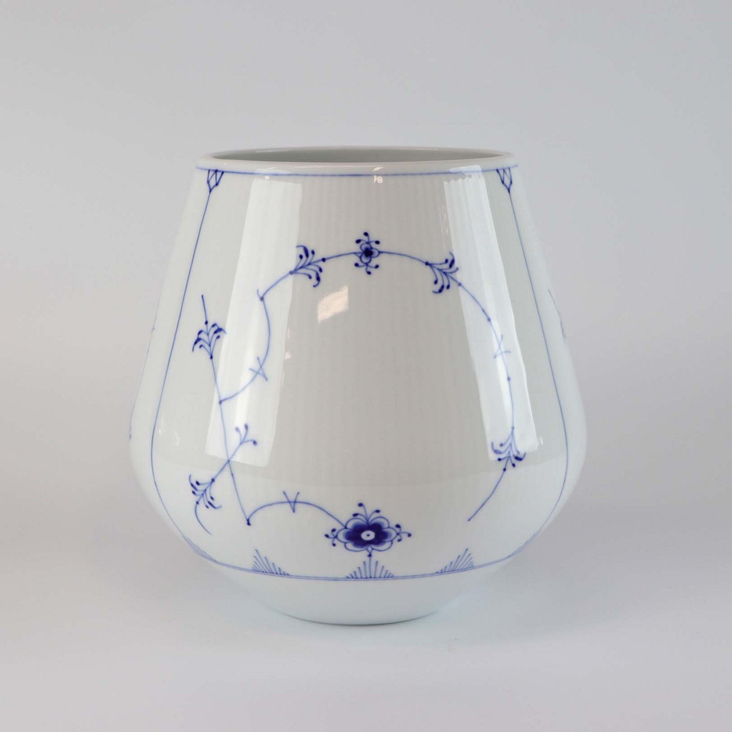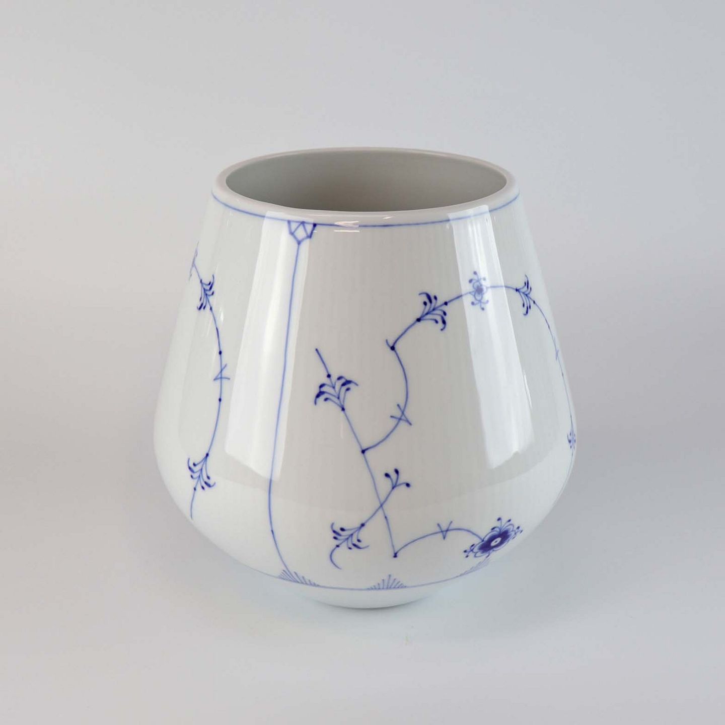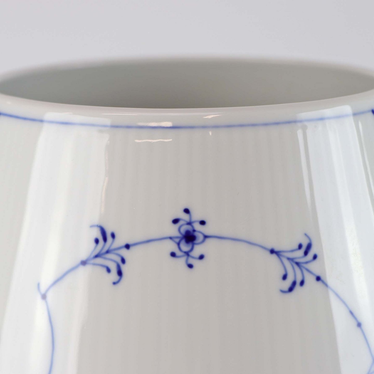 Riflet hvidt porcelæn med dekoration af blå ranker og blomster